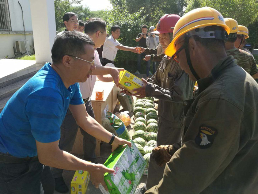 在關(guān)愛農(nóng)民工送清涼活動(dòng)現(xiàn)場,顏佳東和劉建軍一行將涼茶、白糖、綠豆、西瓜等消暑物資一一送到農(nóng)民工的手上,農(nóng)民工們表達(dá)感謝之余,紛紛表示在安全生產(chǎn)的同時(shí)一定會(huì)盡全力加快項(xiàng)目的建設(shè),確保完成6月30日工程順利通水目標(biāo)。